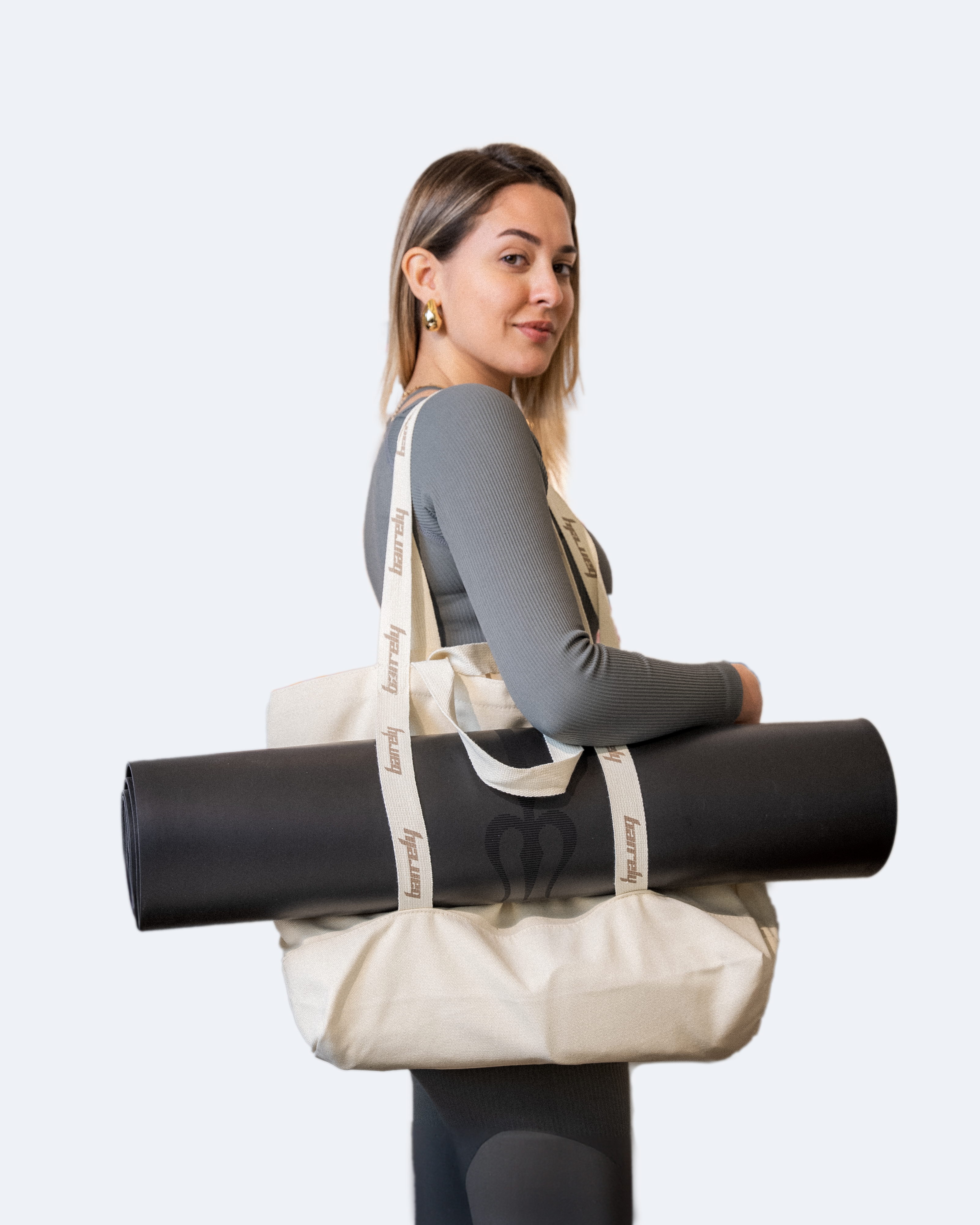 Introducing the Tote Bag — Your new go-to for any event! Created with 100% natural cotton canvas, this trendy and functional tote allows you to effortlessly achieve a chic appearance. Featuring a spacious interior, a zippered pocket for necessities, and a customized handle for carrying your yoga mat. Suitable for workouts, beach trips, or just strolling in style.